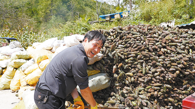 劉由成今年新購置了脫粒機,將收購來的松塔直接加工成松子再外銷,不僅提升了產(chǎn)品附加值,還增加了利潤,也極大地降低了運輸成本。僅靠收購、加工松塔這一項,他和妻子一年的收入就達10多萬元。